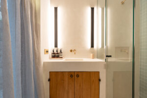 - Luxurious bathrooms with designer fixtures and rain showers.