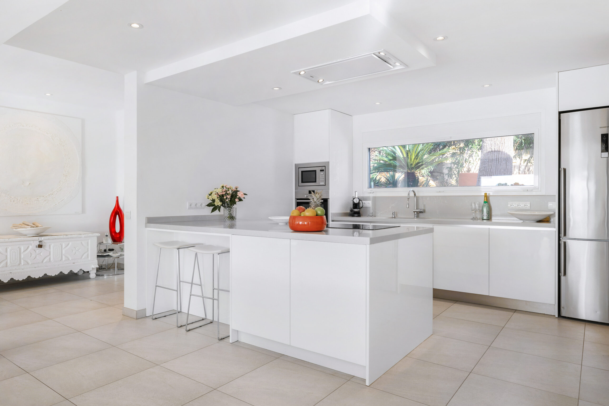 - Description: ABOUT THE AREA Can Furnet is a famous residential area with astonish views on Dalt Vila and Formentera. It is the ideal gated community for tourists visiting the Island, just a ten minute drive from the town of Ibiza. The community is located in picturesque landscapes surrounded by pine tree and hills. You will be pleased by the excellent facilities and services. Offering a 24 hours surveillance service, Can Furnet is one of the most exclusive Ibiza's urbanization. BEDROOMS (Max capacity 11 people) Main House ▸ 1 En-suite double bedroom ▸ 1 Master en-suite bedroom with queen size bed plus a single bed ▸ 3 Double bedrooms with dedicated external bathrooms BATHROOMS Main House ▸ 2 En-suite bathrooms ▸ 2 Shared bathrooms (rooms dedicated) ▸ 1 Shared bathroom with independent wc and shower (divided in 2 separate locals one by the other) LIVING AREA Main House ▸ Kitchen and dining area with living room/saloon ▸ Lounge TV area with large sofa ▸ Gym Outdoor Area ▸ Swimming pool with sunbeds ▸ Outdoor lounge area with sea view ▸ Outdoor dining area FACILITIES • Sea view • Swimming pool • Area lounge • Garden • Air conditioning • Alarm • Safe boxes • Fully equipped kitchen • BBQ • Outdoor dining area • Wi-Fi • Smart TV • Sound system • Gym • Laundry • Dryer • Washing machine CLEANING SERVICES Cleaning service included and requires 3h (circa). Available every: ▸ Monday ▸ Tuesday ▸ Wednesday ▸ Thursday ▸ Friday ▸ Saturday *Fresh towels twice a week Show all description