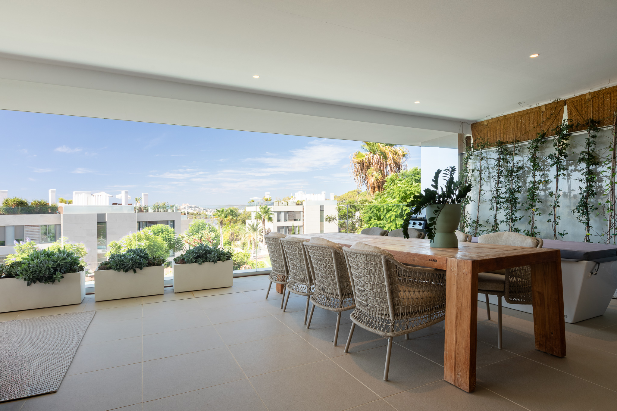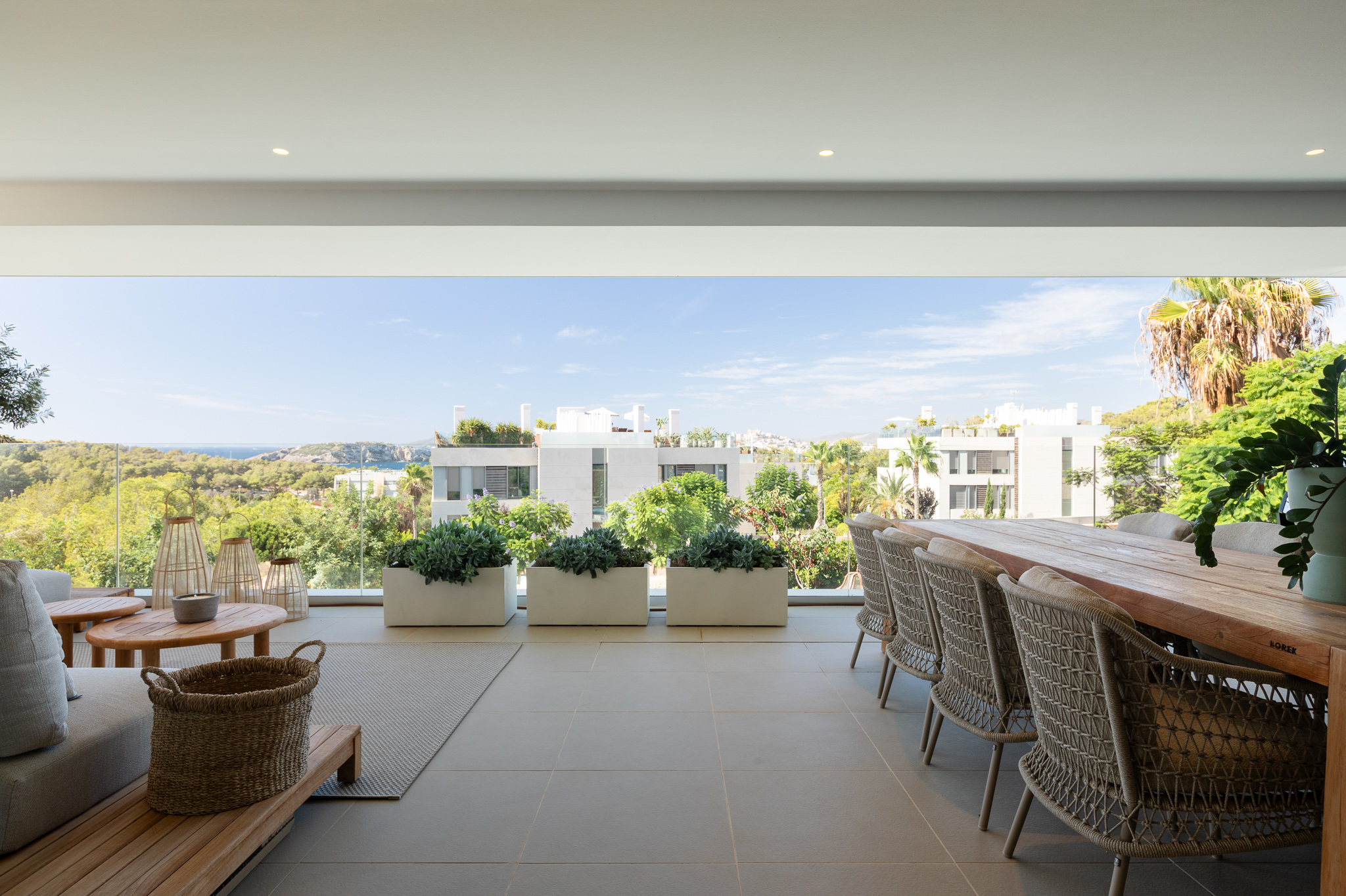 Set in the prestigious White Angel complex, this stylish 4-bedroom, 4-bathroom apartment sits perfectly in the hills of Talamanca to capture sweeping views over Talamanca Bay, the Marina and Dalt Vila. It's designed to merge inside and out with its open-plan living, floor-to-ceiling glass and private terraces, all framed by quality finishes, designer touches and premium appliances.