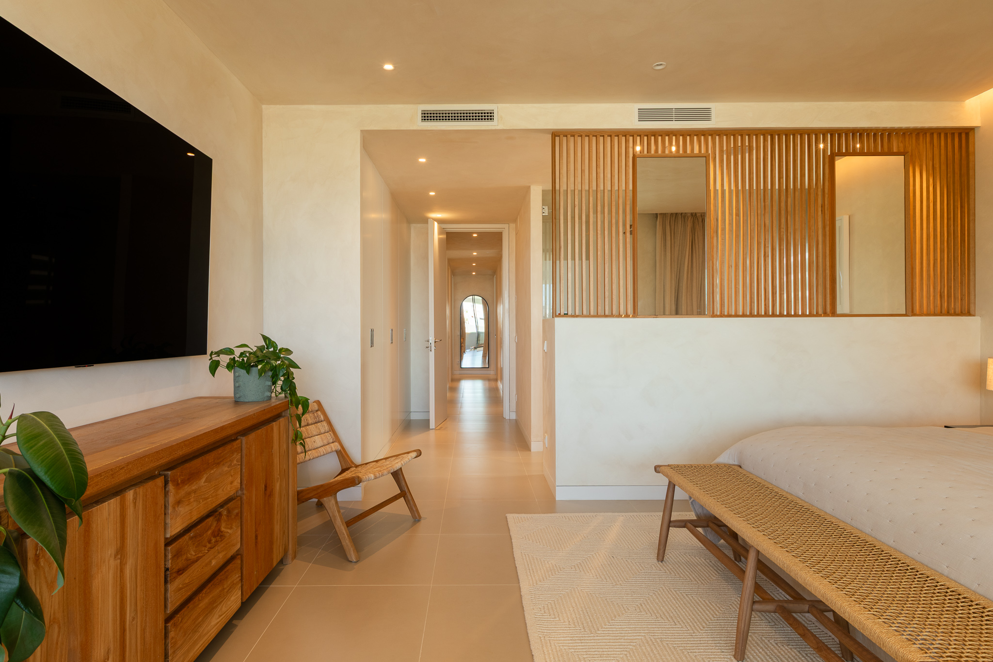 White Angel represents the ultimate in secure luxury living, combining sophisticated apartment design with comprehensive resort amenities in the prestigious Cap Martinet area. This exceptional residence offers both the privacy of a standalone home and the security of a gated community, all while providing stunning panoramic views of Ibiza's most iconic landscapes.