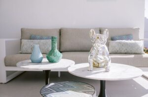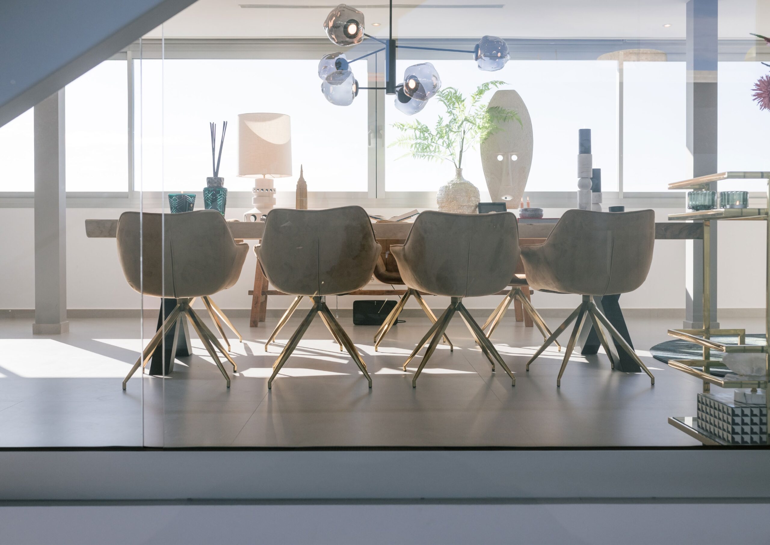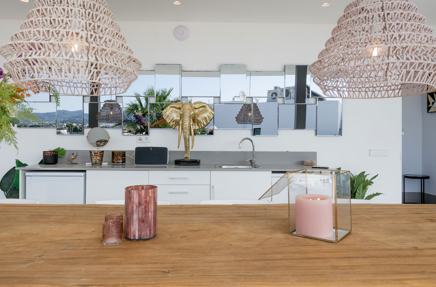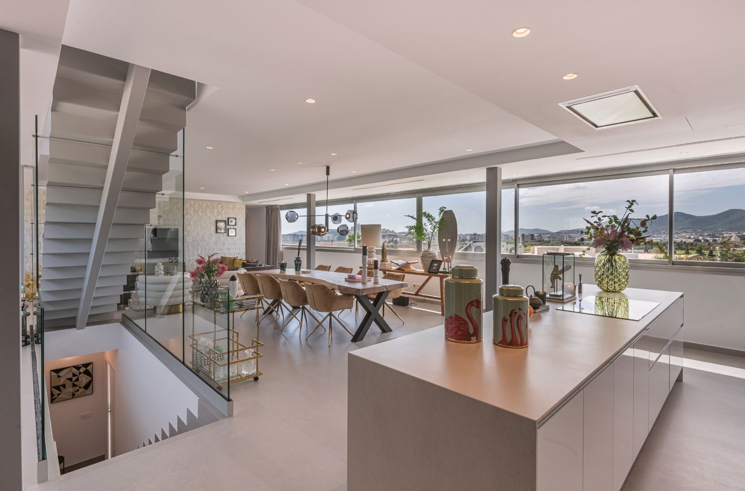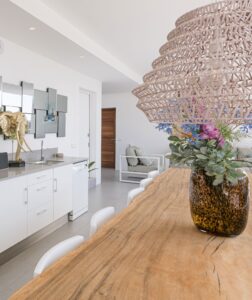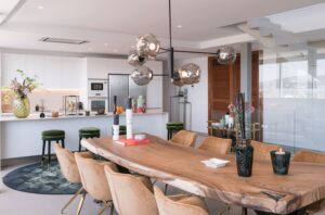 The villa features a sophisticated interior with an open-plan living space, seamlessly blending indoor and outdoor areas. Designed with velvet, wood, and stylish accessories, it offers a warm and inviting ambiance.Interior Highlights: