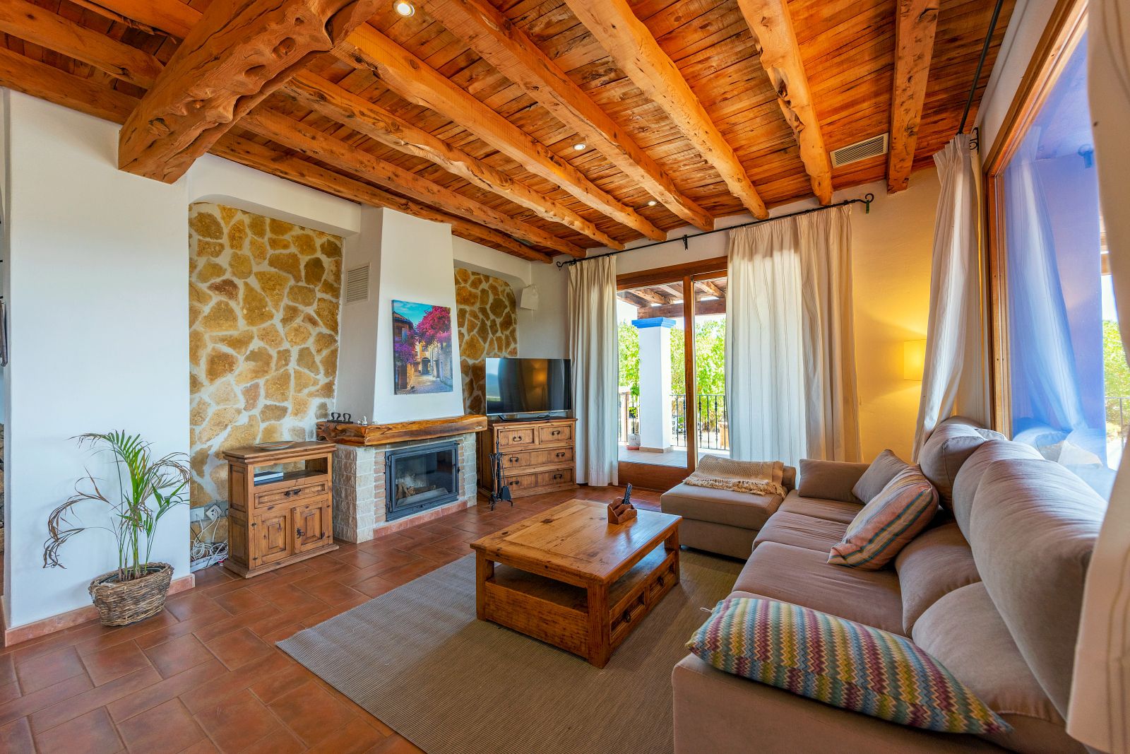 With a built area of 450 m² and set on a 15,000 m² plot, the villa features an impressive garden, several fruit trees, and large terraces. This typical Ibiza villa combines comfort and elegance. Offering 5 double bedrooms, 4 bathrooms, and an additional guest toilet, along with an independent apartment, this property is perfect for family living or as a long-term rental.