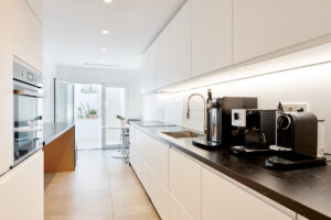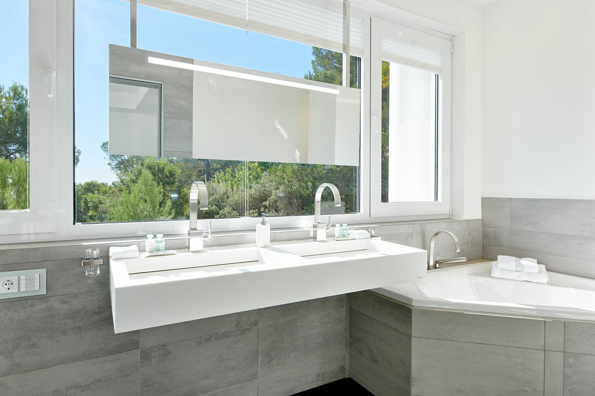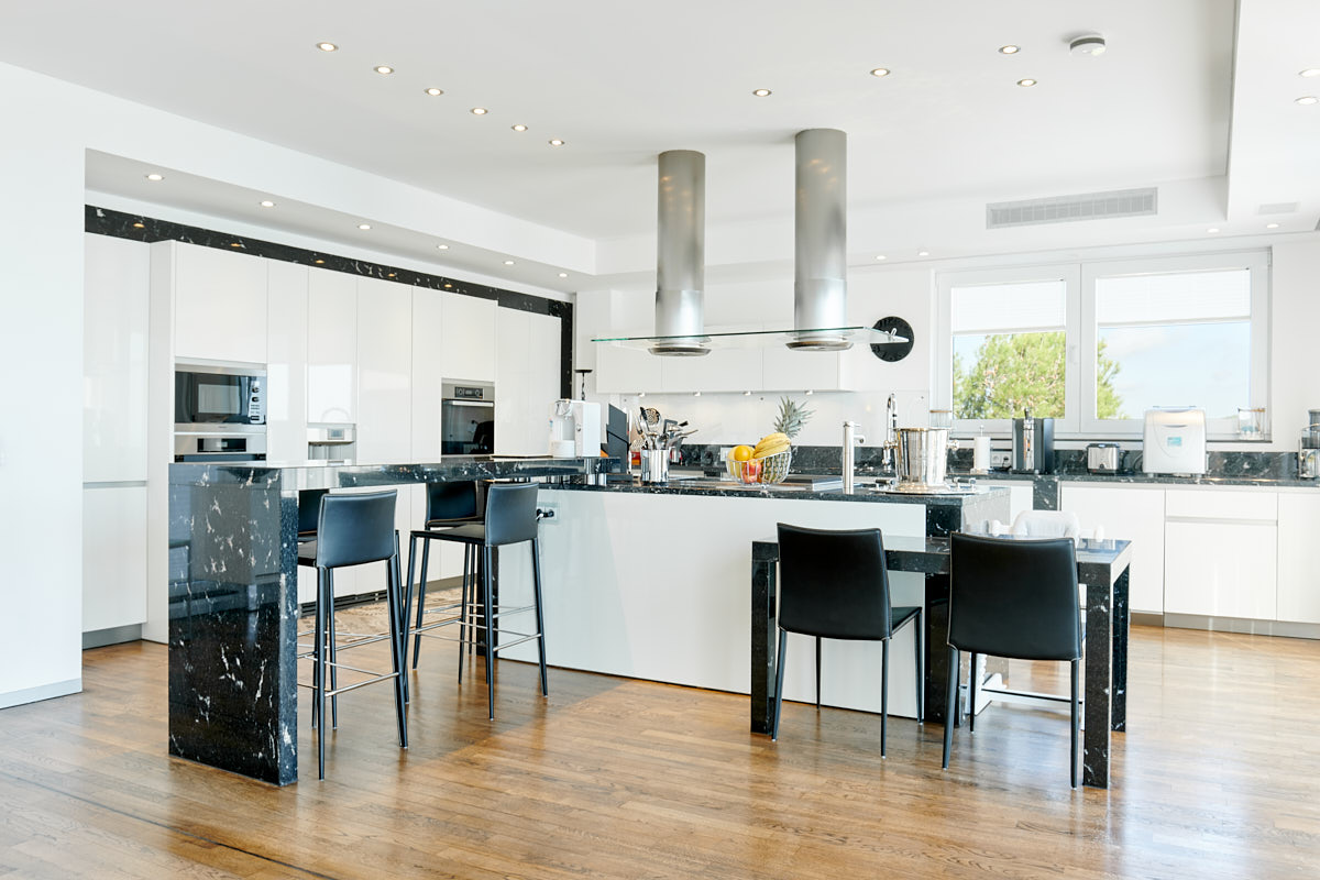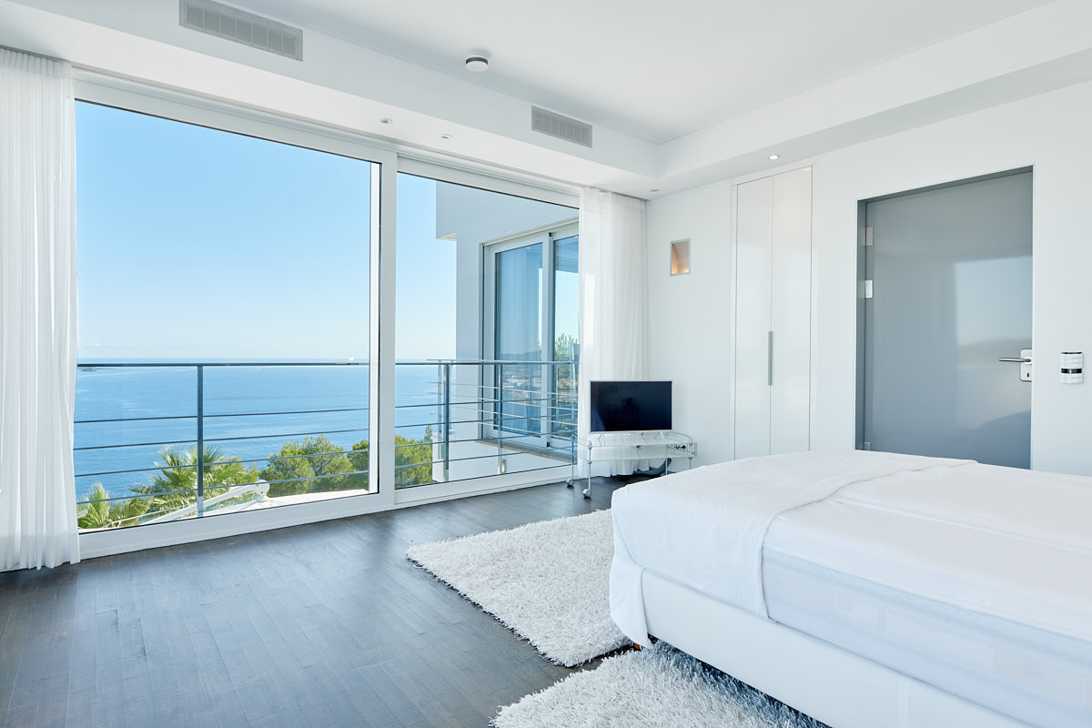 - Description: Heated infinity pool (approx. 66 m2) with LED-RWB illumination Two-car garage, approx.39 m2 Puristic, state-of-the-art architecture Light-flooded rooms Real oak parquet flooring in all living areas, rest of the house with high quality tiles Bathrooms with double basin, bidet, bathtub and/or shower, Korean and Wenge-Wood-Design 4 bedrooms: Master, VIP, all with ensuite bathroom, 2 guest-bedrooms with shared bathroom + a Den, which can be converted into a 5th bedroom Guest-toilet on level 0 is fully fitted with bathtub and shower Staff quarters on level -1 with bedroom, kitchen and bathroom Master bathroom fittings (stainless steel) by Dornbracht, big rain shower by Dornbracht State of the art indoor and outdoor furniture with Bauhaus style elements All windows by Schüco with electric aluminum shutters Stand by Diesel Generator in case of Power-Cut, Cistern, Central Osmosis Maschine generating drinking water quality throughout the house 4 terraces: 120 m2 on level 0 30 m2 on level 1 220 m2 rooftop terrace with jacuzzi on level 2 All terraces with spectacular views of ocean, city and port Sun sails on roof-top terrace, as well as on level 0 dining terrace hold by stainless steel poles Show all description